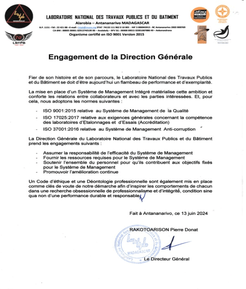 Certifié au « Système de Management de la Qualité ISO 9001 Version 2008 » depuis 2014 et en ISO 9001 Version 2015 à partir du 2017